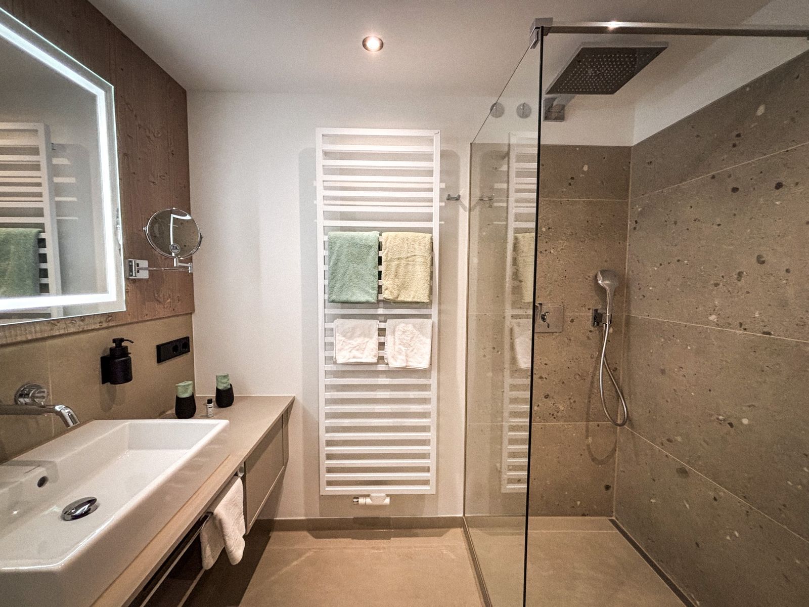 für 1 bis 2 Personen I Südbalkon mit Talblick 1,80 m Doppelbett I Bad mit Dusche, separates WC I Holzboden